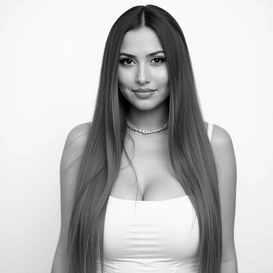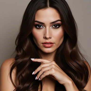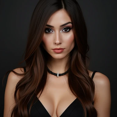 Art of nude woman's very sexy body scheme anatomy-bare shoulders and black eyes-very long straight brunette hair spreading legs and showing her pussy in seductive pose. New year elements: champagne gift emoji