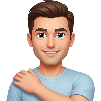 football coach in a blue shirt touching the top of his shoulder emoji
