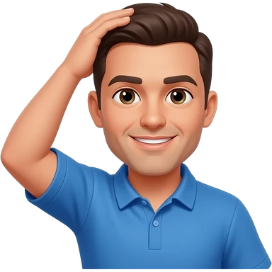 football coach in a blue shirt touching his scalp with both hands emoji