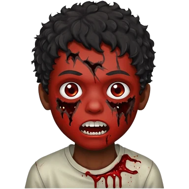 menino com cabelo cacheado e olhos marrons, com aparencia de zumbi emoji