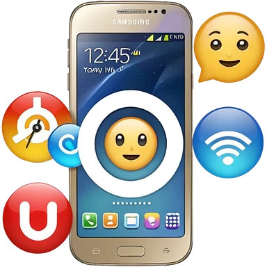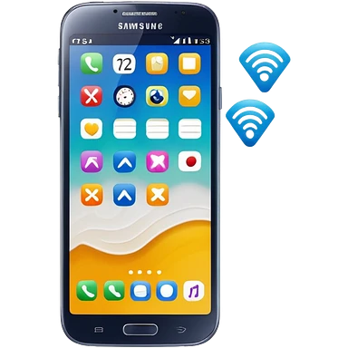 Samsung Galaxy phone with app icons, time, Wi-Fi emoji
