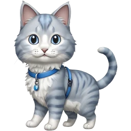 blonde short-haired woman walking a gray and white cat on a blue leash emoji