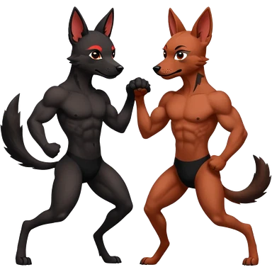 Anthro Muscular Xoloitzcuintle Dog playing with anthro muscular red wolf emoji
