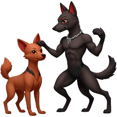 Muscular Xoloitzcuintle Dog playing with muscular red wolf emoji
