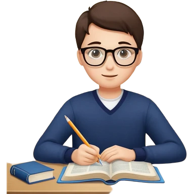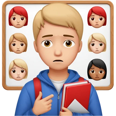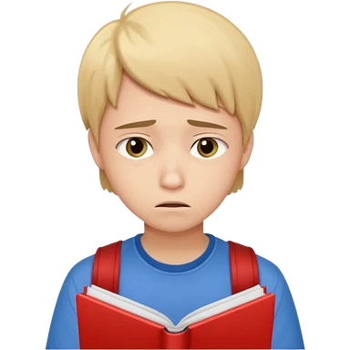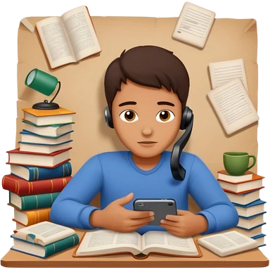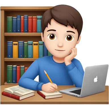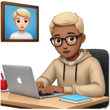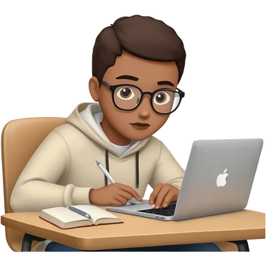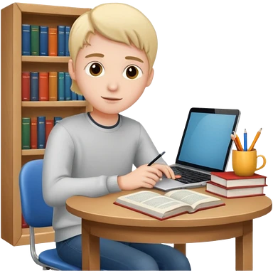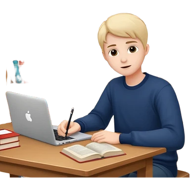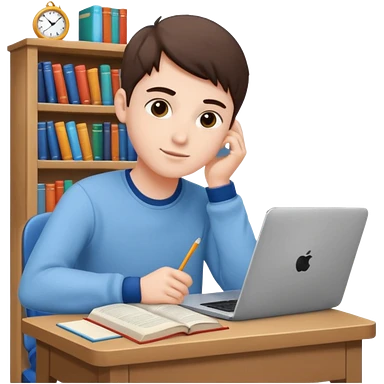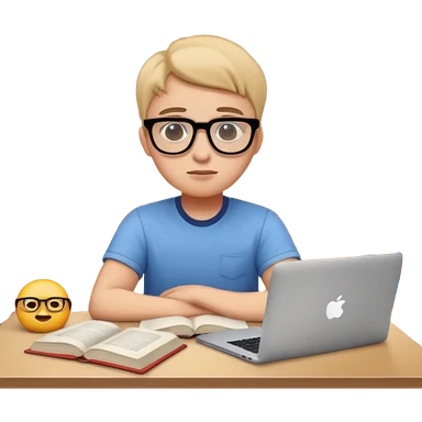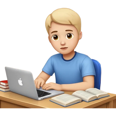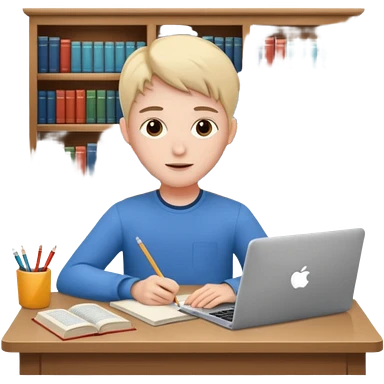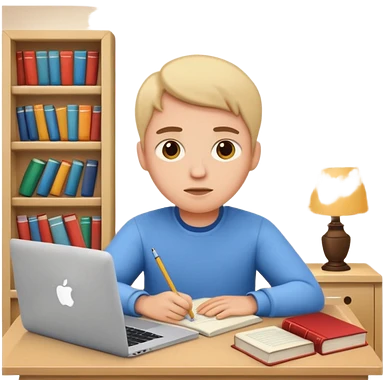 emoji student studying at home english books, macbook bored, room, white background emoji