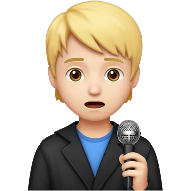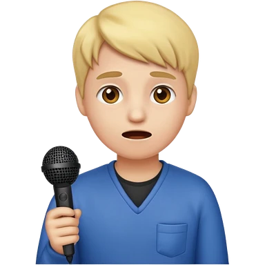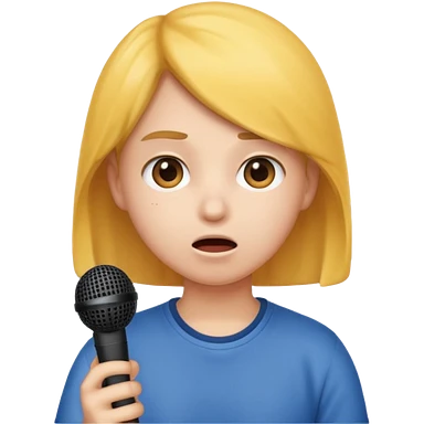 emoji student nervous afraid to speak, shy face, microphone crossed, white background emoji