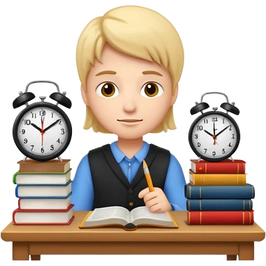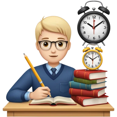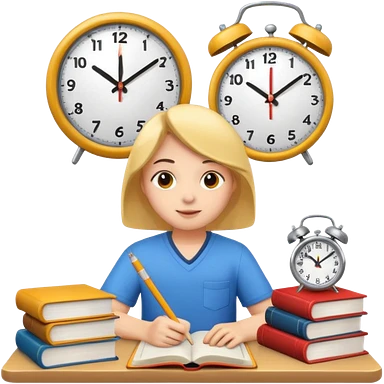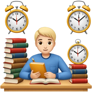 emoji student studying hard with books and clock, motivated, white background emoji