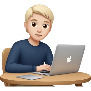 ученик учит английский язык за столом дома с макбуком прямо смотрит emoji