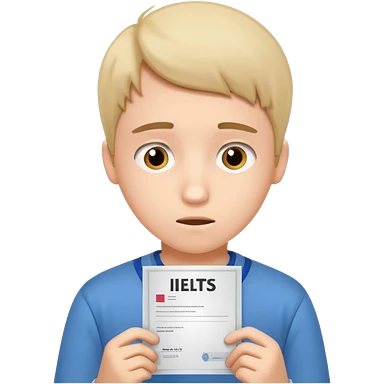 студент грустный после провального экзамена IELTS смотрит свои результаты emoji