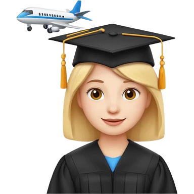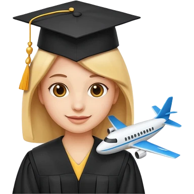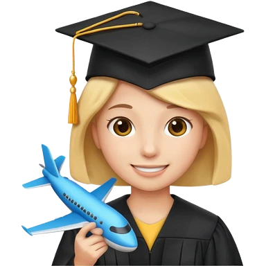 emoji student at university with graduation cap and airplane, happy, white background, emoji