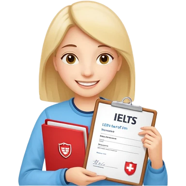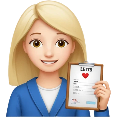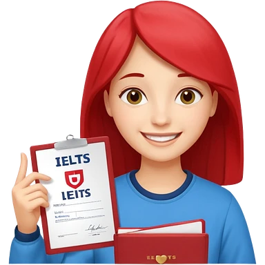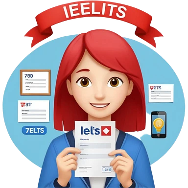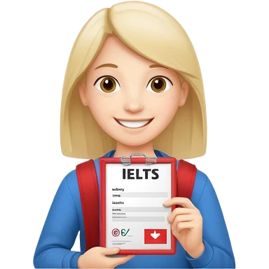 студентка радостная после успешной сдачи экзамена IELTS на 7.0 смотрит свои результаты на сертификате с текстом IELTS на белом фоне emoji