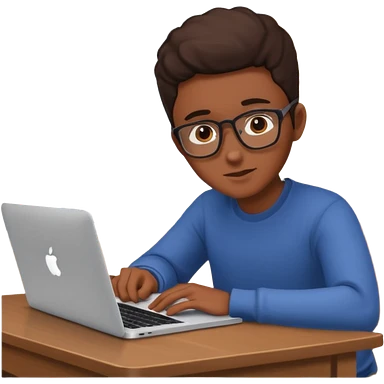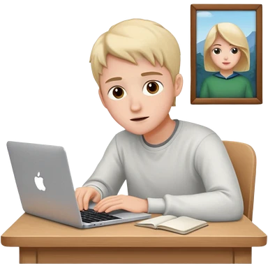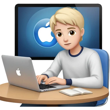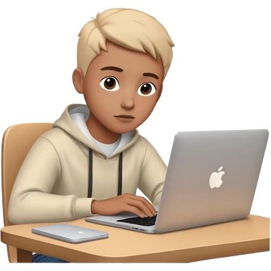 ученик учит английский язык за столом дома с макбуком прямо emoji