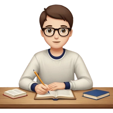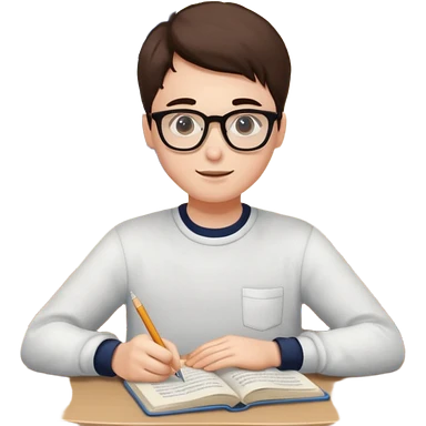 ученик учит английский язык за столом дома emoji