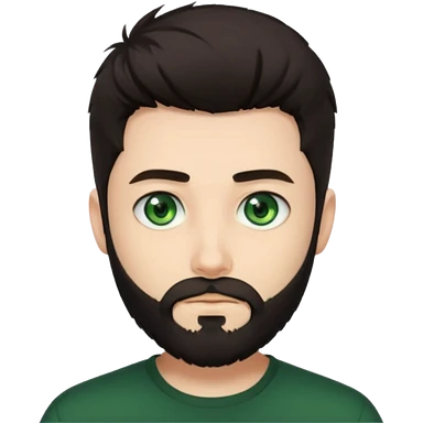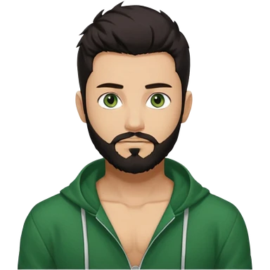 Man with a short full beard, Styled hair, Best looking man in the planet, onepiece style dark hair, green ejey, more anime style emoji