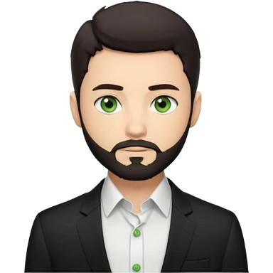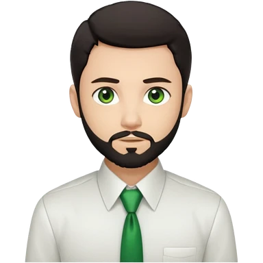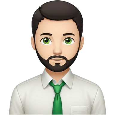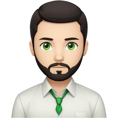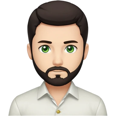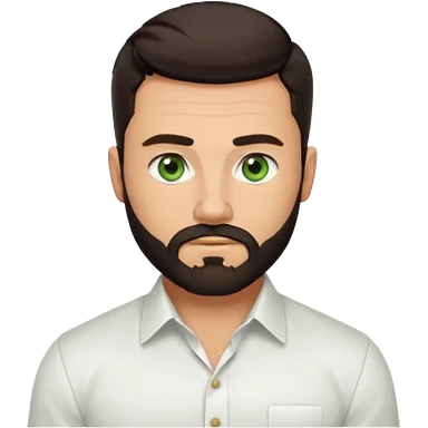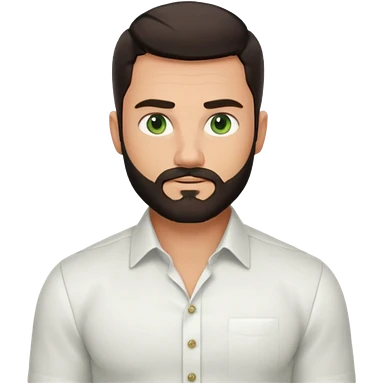 Man with a short full beard, Styled hair, Best looking man in the planet, onepiece style dark hair, green eyes, more anime style more maskulin. Wearing a white formal shirt, first buttons open emoji
