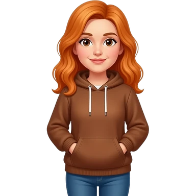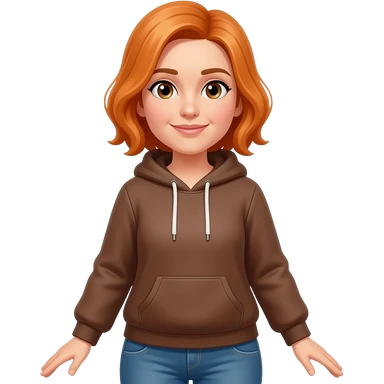 una señora de 38 años con sudadera marron amarangado com pelo amaranjado y pantalones casuales y que se vea joben emoji