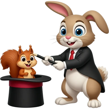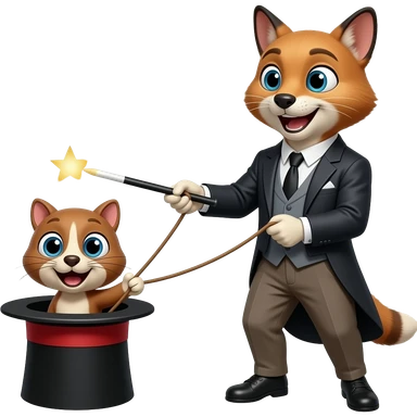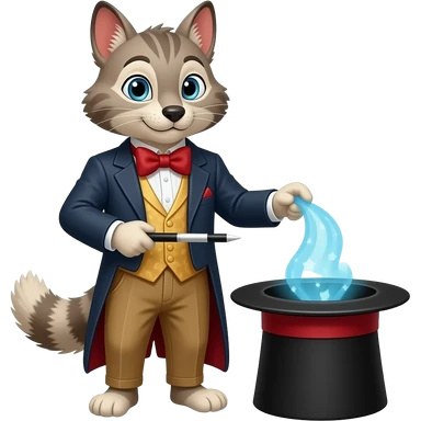 Hazme a un animinal haciendo magia y sacando otro animal de la gorra y que este como sorprensido el animal que esta dentro de la gorrra emoji