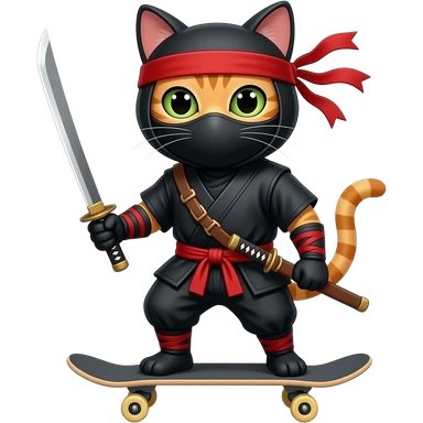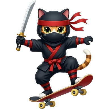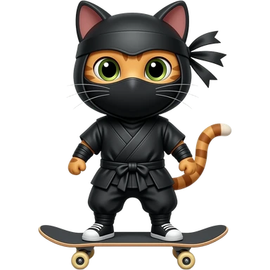 hazme un gato que este con en skate partinando con un oufit de un Ninja emoji