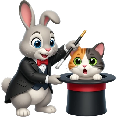 Hazme a un animinal haciendo magia y sacando otro animal de la gorra emoji