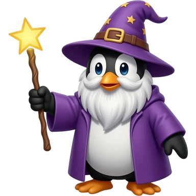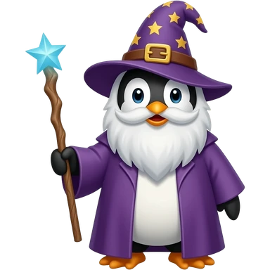hazme un pingui mago con una barrita y una Barba hehacfo un hechizo emoji