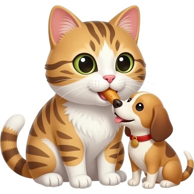 Hazme un gato con la cara de un chino comiendo un perro emoji