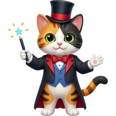 hazme a un gato tricolor haciendo un truco de magia emoji