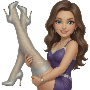 Silver glitter high heels -hold up thigh high stockings female- emoji
