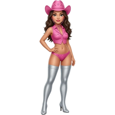 Silver glitter high heels -hold up thigh high stockings female- pink cowboy hat - sexy emoji