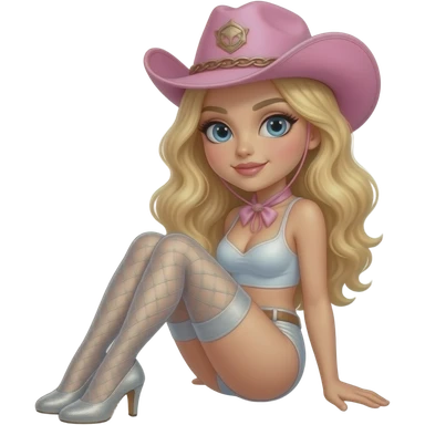 Silver glitter high heels -hold up thigh high stockings female- pink cowboy hat - sexy - topless - blonde emoji