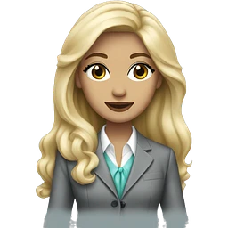 Russian Blonde long hair with red lips and black eyes Tiffany diamond seller in a grey suit emoji