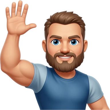 Muscular man on steroids with dark hair and beard raising open hand d emoji