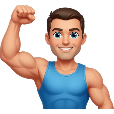 Muscular man on steroids with dark hair and beard in a skimpy tank top raising open hand d emoji