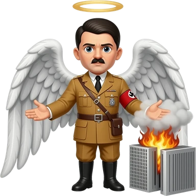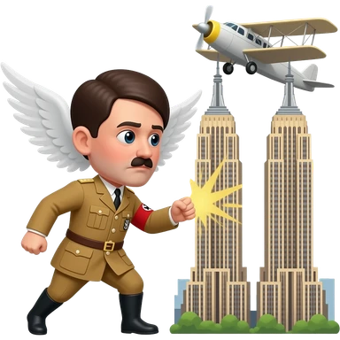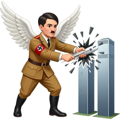 Hitler as an angel, holding a plane in his hands, smashing it into the Twin Towers in New York on 9/11 emoji