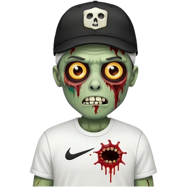 A zombie wearing a white Nike shirt, a black Nike cap, emoji