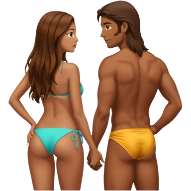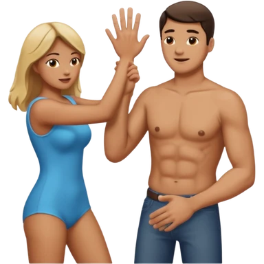 Mulher ajoelhada,e um homem em pé sem roupa emoji
