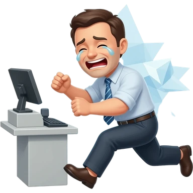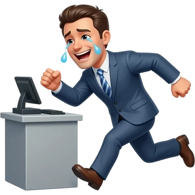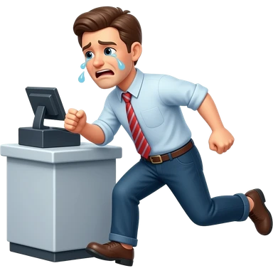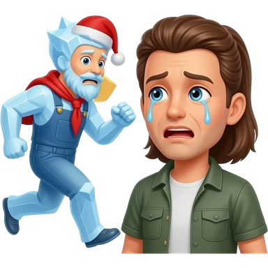 Ice agent chasing a crying adult cashier while laughing devious emoji