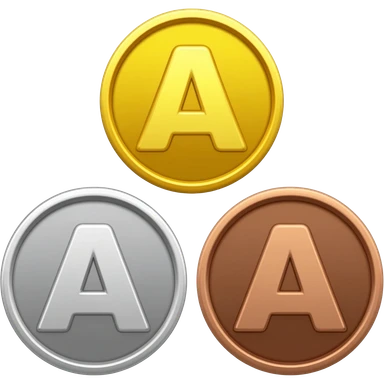 A bunch of 3 coins with an A on the center of the 3 coins, 1 of them are golden, 1 of them are silver & 1 of them are of bronze, made them all circular, not poly, all the curves are perfectly soft emoji