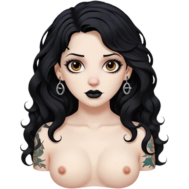 Goth White skin Black wavy hair brown eyes big nose naked big boobs tattoo emoji