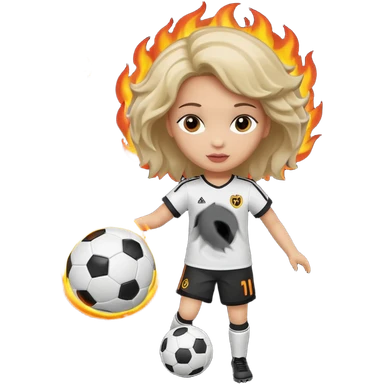 Boneca segurando uma Bola de futebol queimando emoji