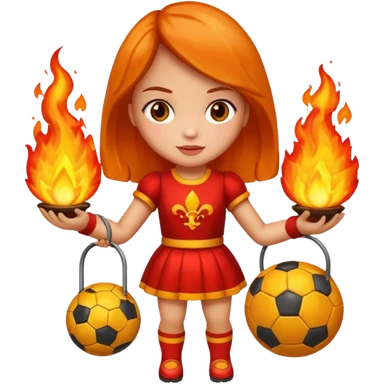 Boneca segurando uma Bola de futebol que está em chamas emoji