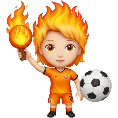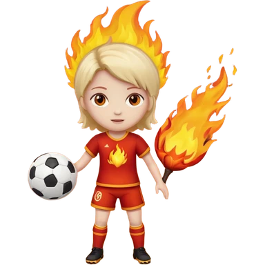 Boneca segurando uma Bola de futebol e somente a bola está queimando emoji