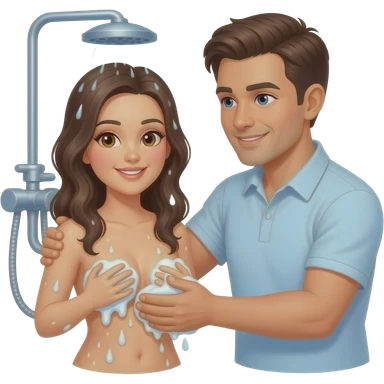 Me washing White girlfriend naked showering emoji