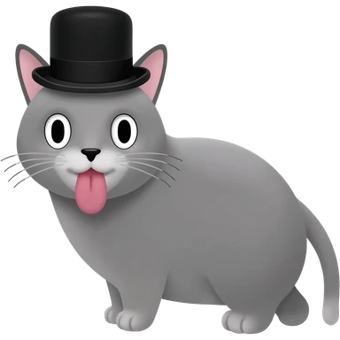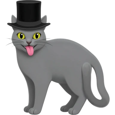 Grey cat with a top hat and it's tounge sticking out emoji
