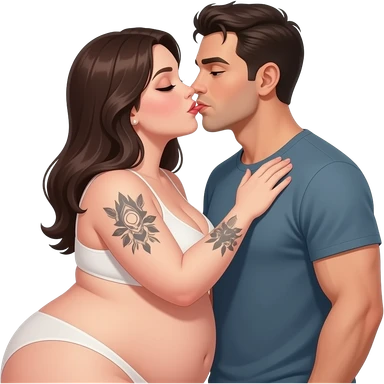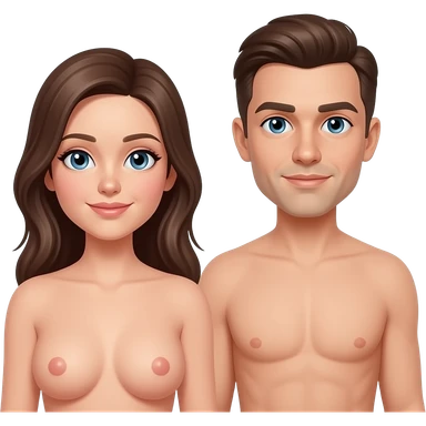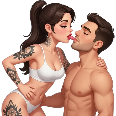 naked white curvy woman with tattoos who is slim and is giving a blowjob or having sexual activities with a man emoji