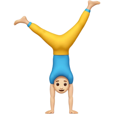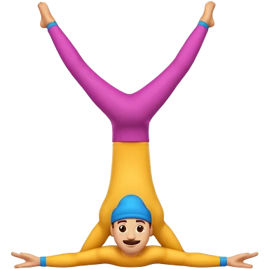 "3D man emoji doing a handstand, cheerful, colorful cartoon style, bright vibrant colors, simple background." emoji