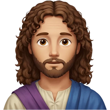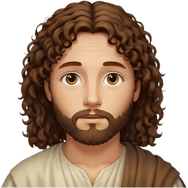 "Jesus with medium curly hair, not long, gentle expression, realistic yet soft digital painting, warm and serene colors." emoji