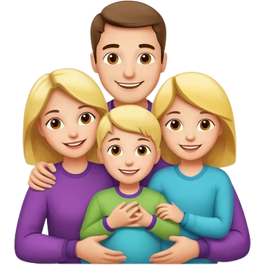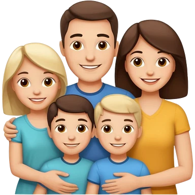 "Husband and wife with 50 children taking a group photo, cheerful, colorful cartoon style, bright and playful." emoji