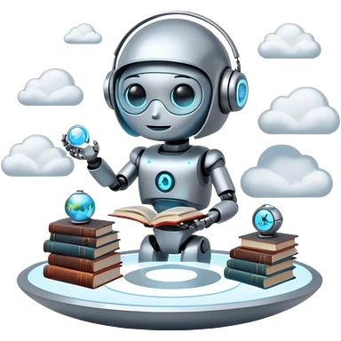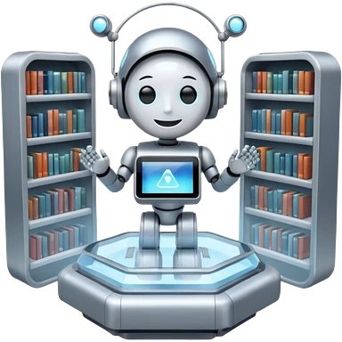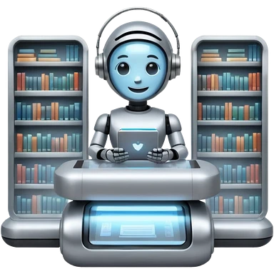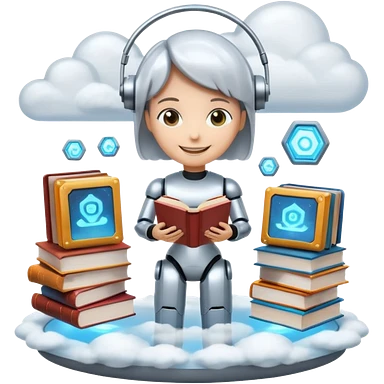 “A futuristic library floating in the clouds, filled with glowing books and holographic screens, with a friendly robot librarian.” emoji