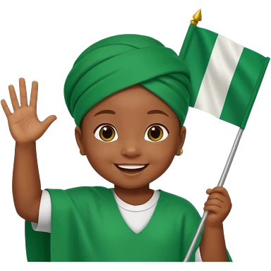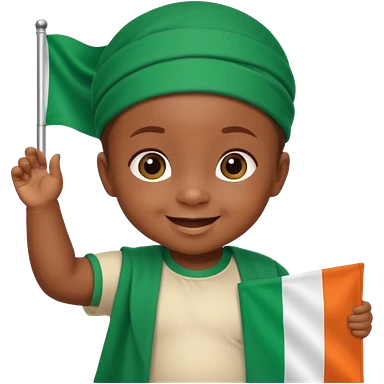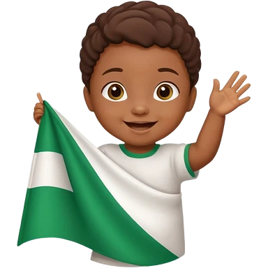 A cute Nigerian baby waving the Nigeria flag, smiling happily, colorful festive background, bright and cheerful atmosphere. emoji