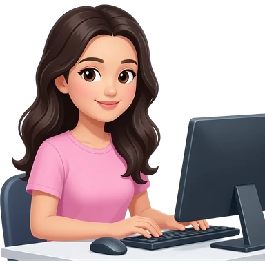 black long wavy hair, asian lady working in a computer with light pink clothes emoji